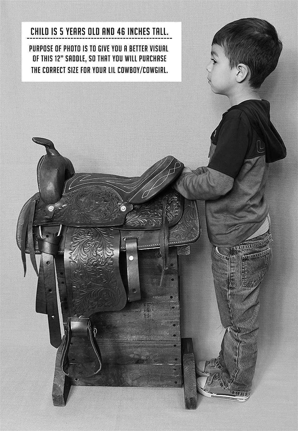12″ Purple/Brown leaf and acorn kids saddle. This is also a comfortable and affordable western saddle. Built for children with durable leather, hardware, and suede seat. Can be used on a miniature horse, shetland pony, and a normal sized pony.