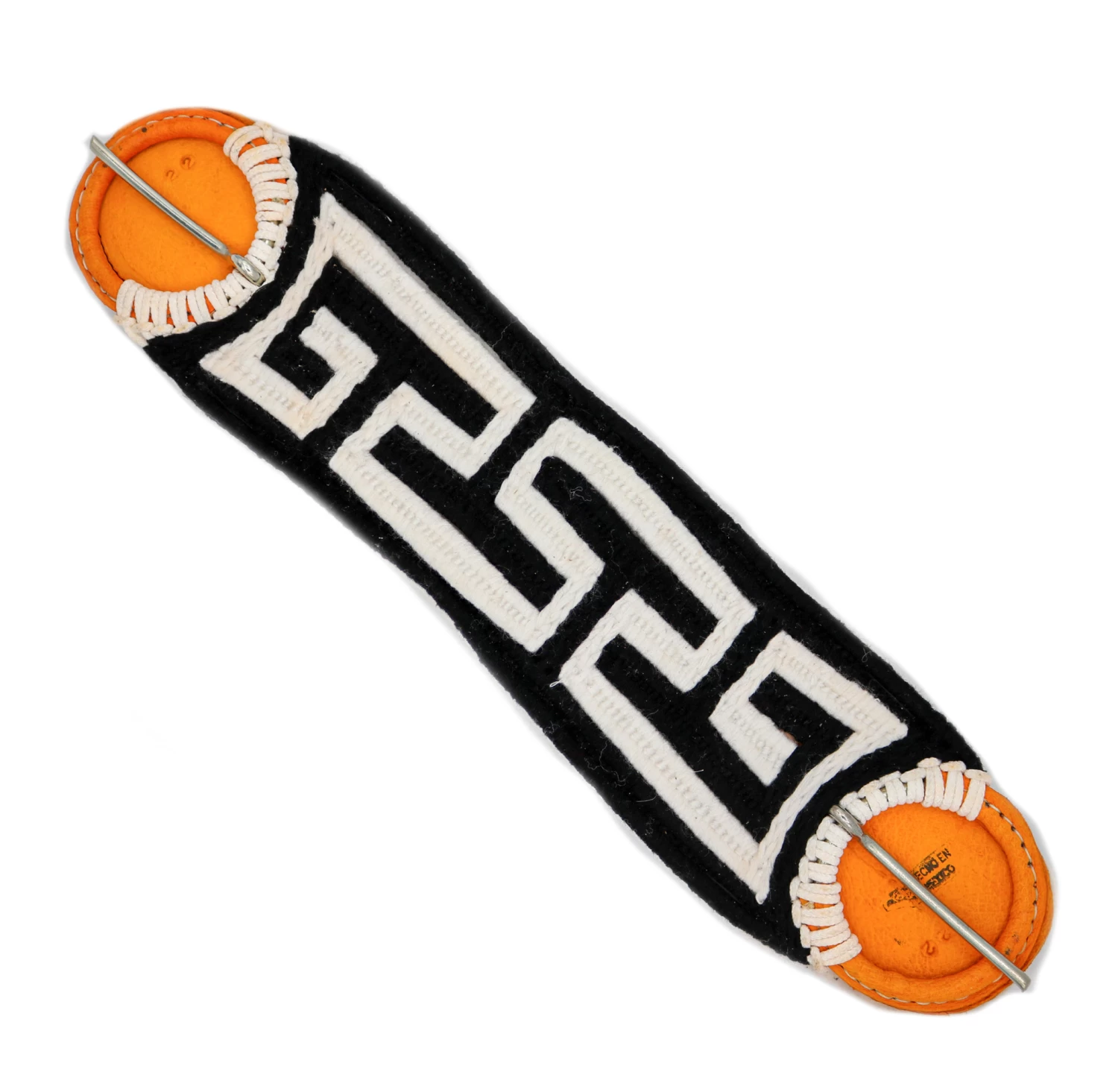 PONY SIZE – Traditional felt lined charro cinch featuring leather covered buckles and steel tongues, custom design. Hand braided cotton charro cinch with traditional pattern lined with a heavy felt under the cinch rings, size 22″.Made in Mexico. Cincho tradicional con hebillas de acero cubiertas de cuero. Cincho de algodon trenzado hecho a mano, talla 22″.
