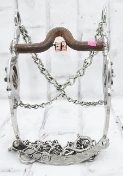 Freno (Acero Inoxidable) Charro es de Porte bajo y el juego completo de cadenas. Hecho a mano en Mexico con un diseño autentico charro.