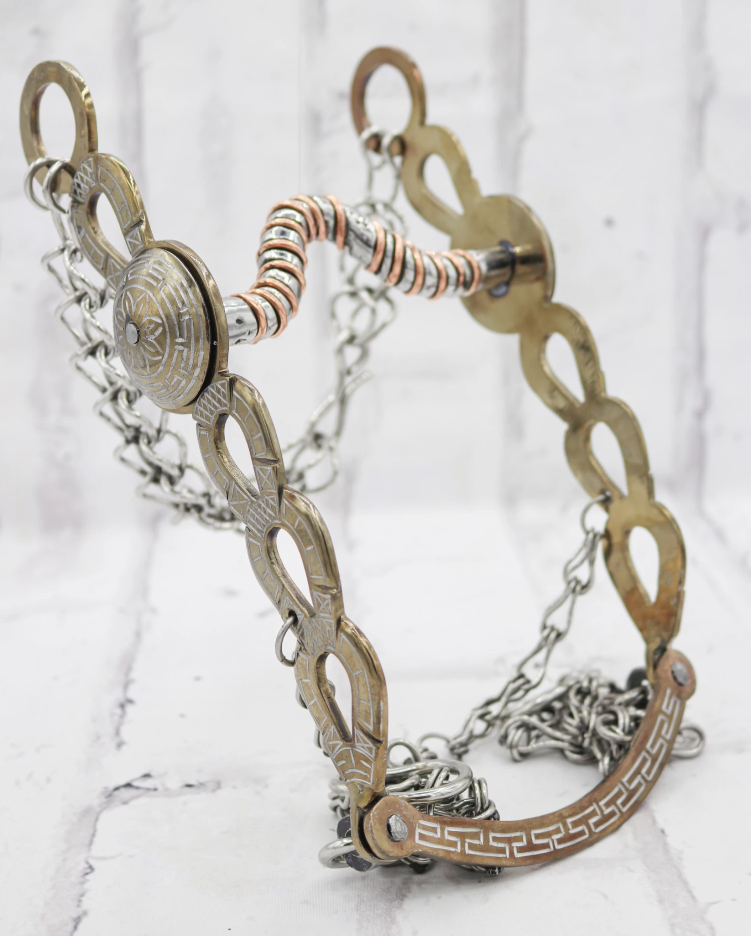 Low/Medium port comes with complete charro chain set. Handemade in Mexico with unique design, features copper rollers.