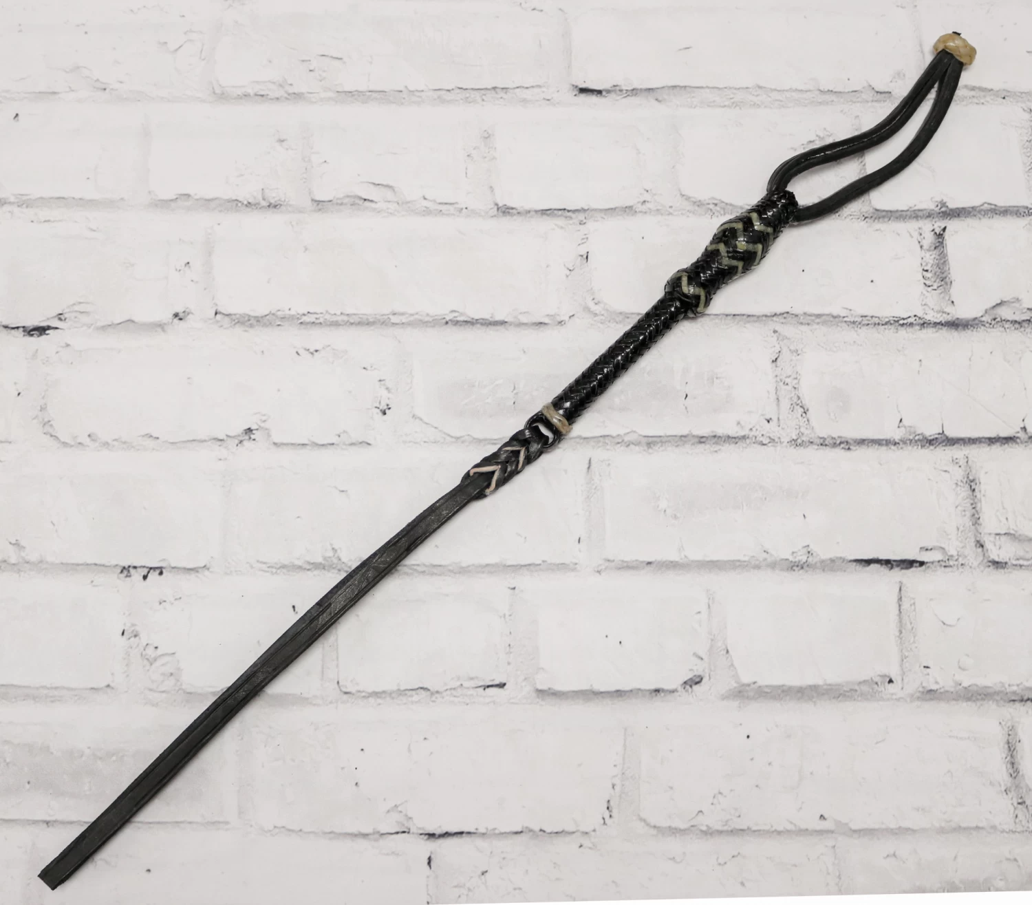 Black Cuarta Charra Trenzada Braided Horse Quirt