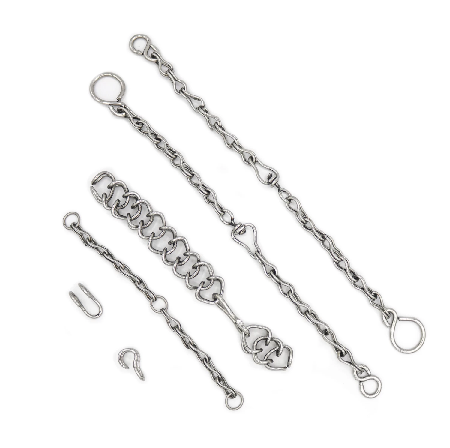 Each chain is 14″ long, comes in pair (2) of stainless steel charro rein chains.. Mexican Horse Bit Curb Chain(Barbada Para Caballo)12″ Long Chain. Charro curb chain replacement set