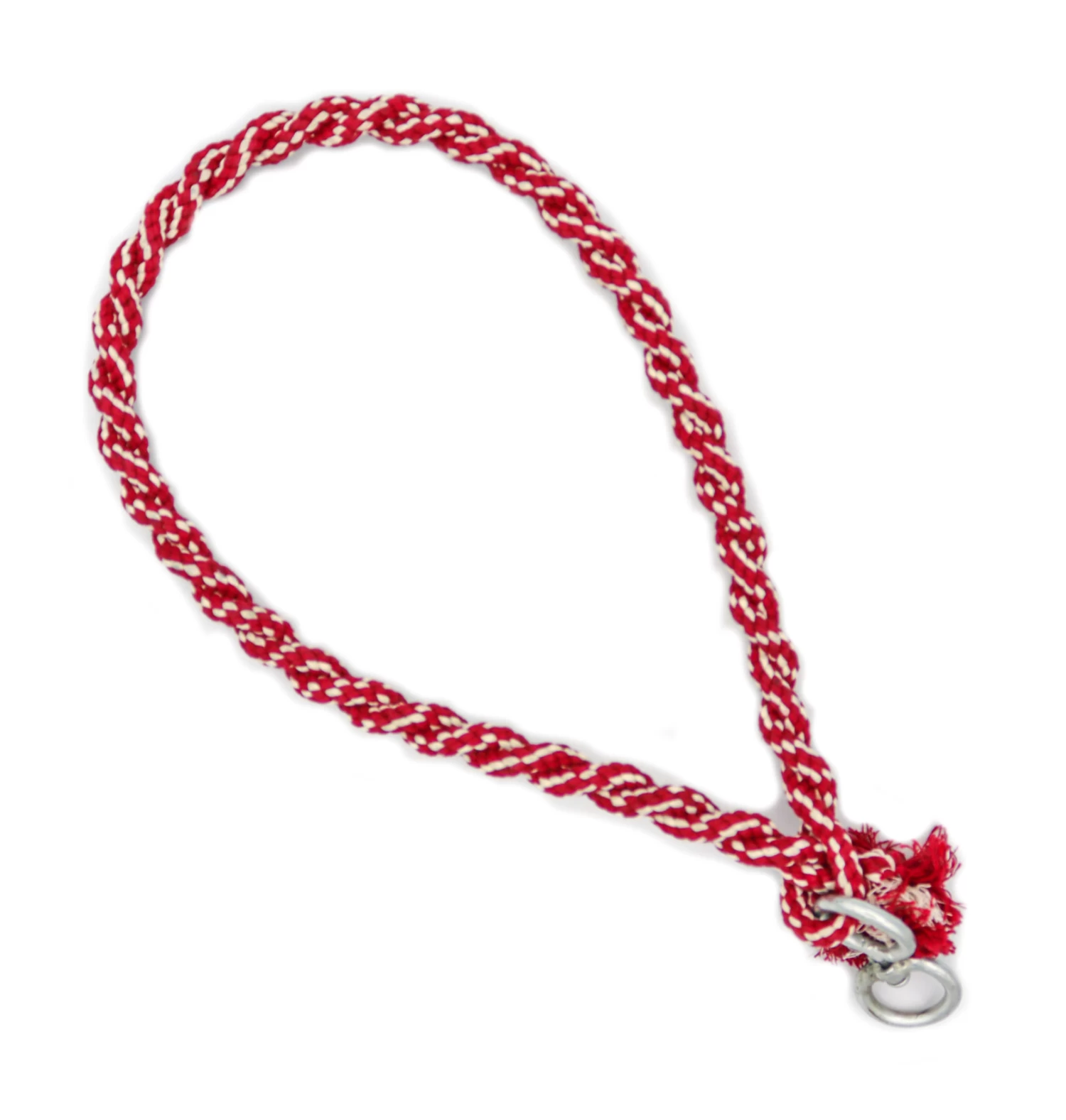 Twisted cotton bosal with handmade with quality products, charro style in medium size. Bosal made in Mexico in red color. Bosal de algodon torcido, hecha a mano con gran material en estilo charro. Medida mediana. Bosal hecho en Mexico en color rojo. One size fits most.