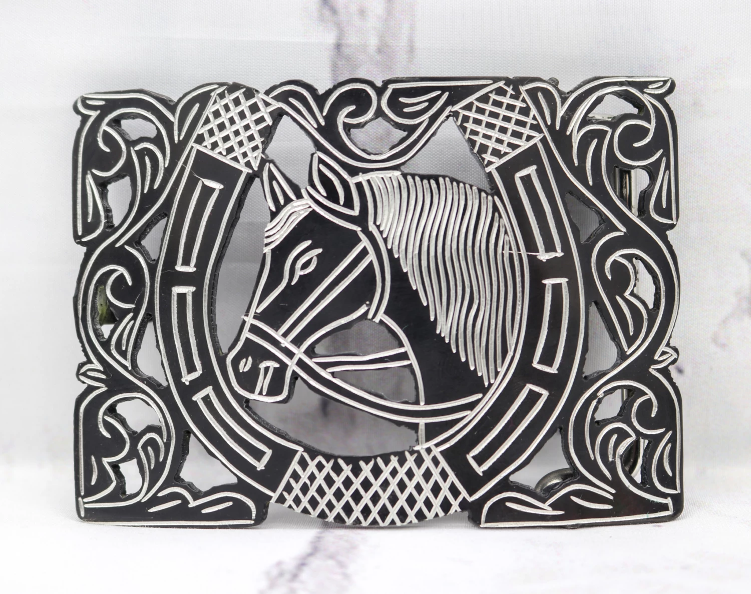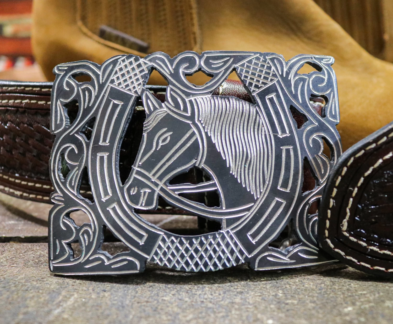 Charro Hebilla Handmade Pavonada Negra Horse Shoe Buckle