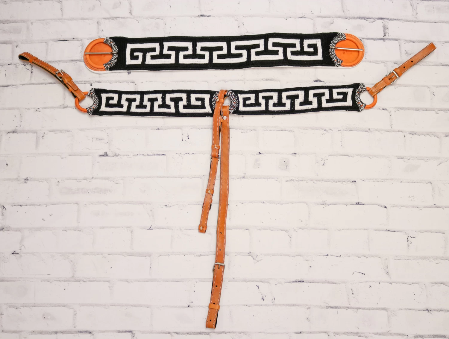Pecho-pretal de Charro diseño tradicional con argollas de acero inoxidable . Tradicional 38″ cincho hecho de nylon .