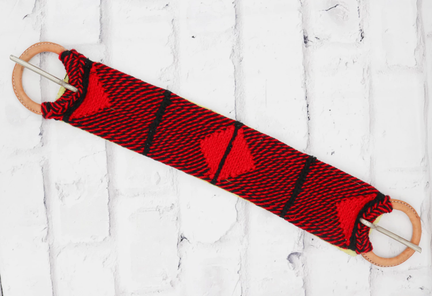 PONY SIZE – Traditional felt lined charro cinch featuring custom design. Hand braided cotton charro cinch with traditional pattern lined with a heavy felt under the cinch rings, size 21″.Made in Mexico. Cincho tradicional con hebillas Cincho de algodon trenzado hecho a mano, talla 21″.