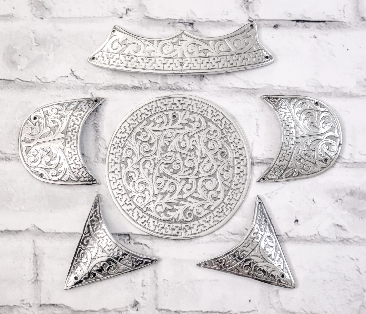 Herraje de Aluminum para montura charra de (6) piezas grabadas a mano que incluyen: