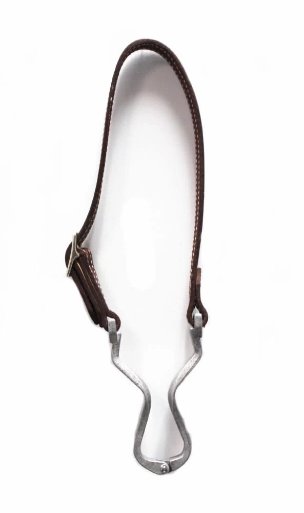 1″ wide leather cribbing strap features alumnium cribbing bar and nickel plated hardware. Fully adjustable, allows for more comfort but still prevents horse from cribbing. Can be positioned from either side of horse.