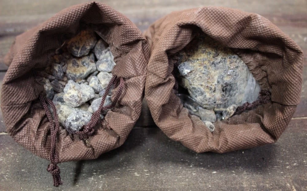 Each rosin bag has rock/chunk size pieces and fine to medium powder.