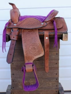 10" Purple Pony Mini Horse Saddle Kids Pleasure Leather Western Saddle