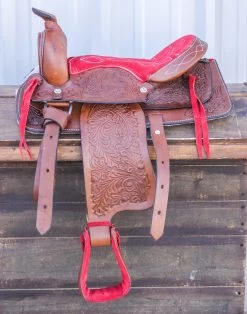 12" Kids Youth Pink Western Saddle Brown Leather Mini Pony Youth Saddle